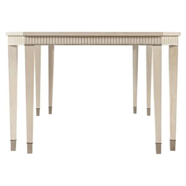 A fresh take on Neoclassicism, this rectangular dining table features artful details such as clipped corners and vertical beading.
