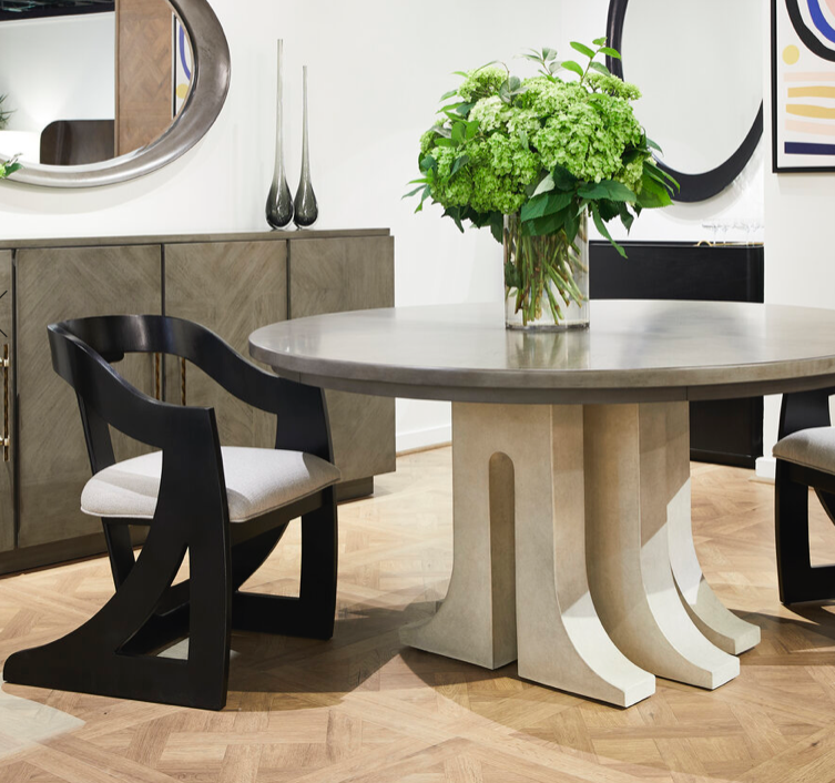 Our Aqueduct table collection gives a graceful yet subtle nod to Brutalist design vis-à-vis its signature limestone-colored Panna Cotta sealed concrete.