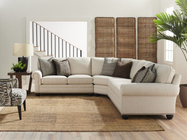 Our Personal Design Series lets you express your own style by selecting your: 1-Frame 2-Scale 3-Style 4-Seat Cushions 5-Back Cushions 6-Arm Style 7-Base 8-Body Welt 9-Nailhead Trim (optional) 10-Fabric and apply our no charge Final Touches options. This image represents one of a multitude of possibilities.