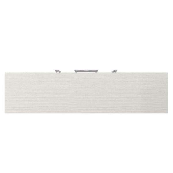 An elevated buffet design features metal end frames that give it a hint of glamour.